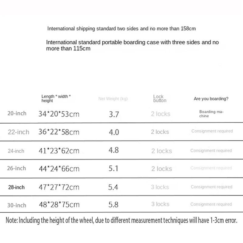| Luggage Size | 28 inch, 30 inch, 24 inch, 26 inch, 20 inch, 22 inch |
