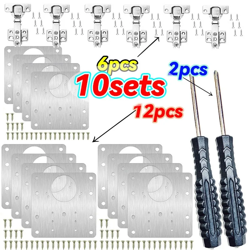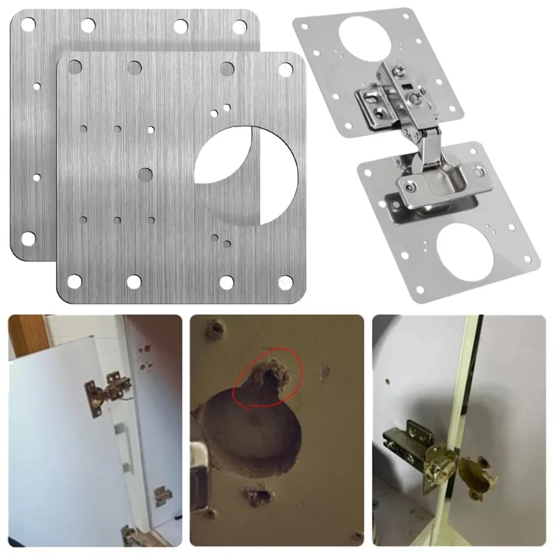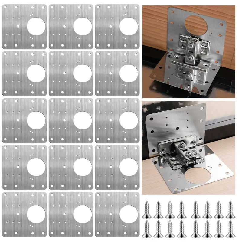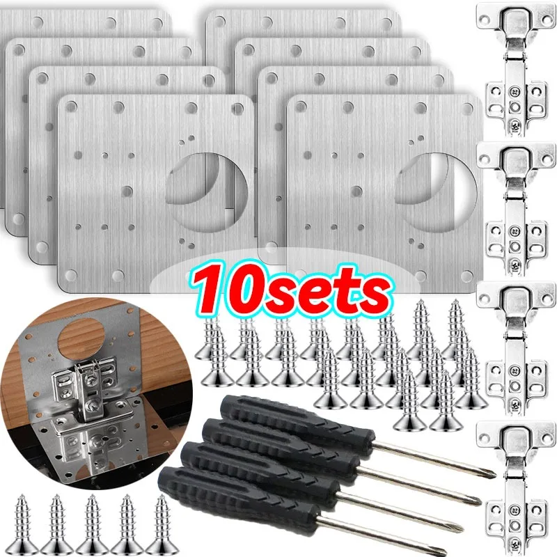 2/10Sets Home Hinge Repair Plate Kitchen Cabinet Door Mounting Fixing Plate with Screw Flat Brackets chair Hardware Tools