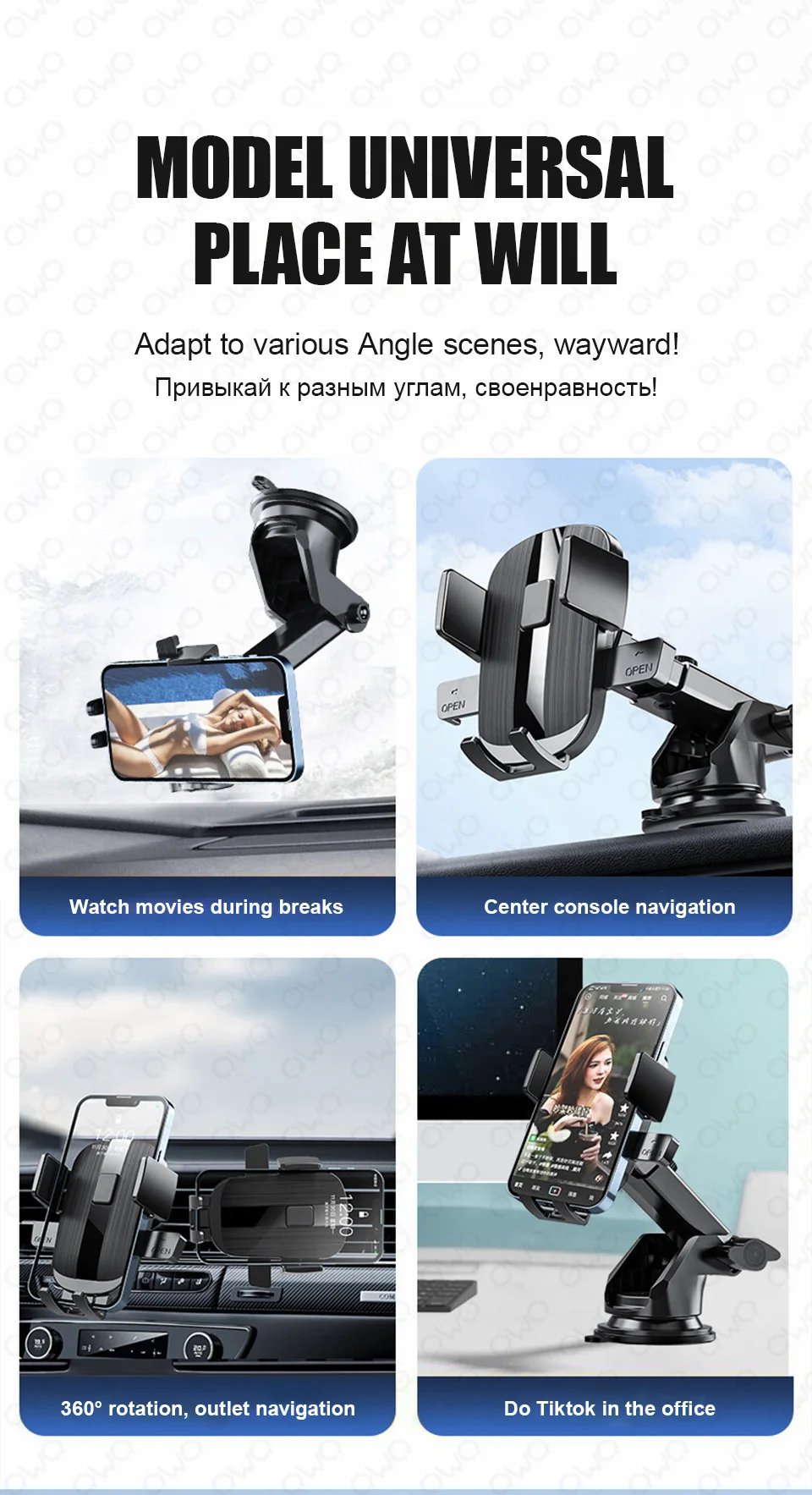 Adjustable Suction Cup Car Phone Holder for iPhone, Samsung, Xiaomi, and Google GPS Navigation