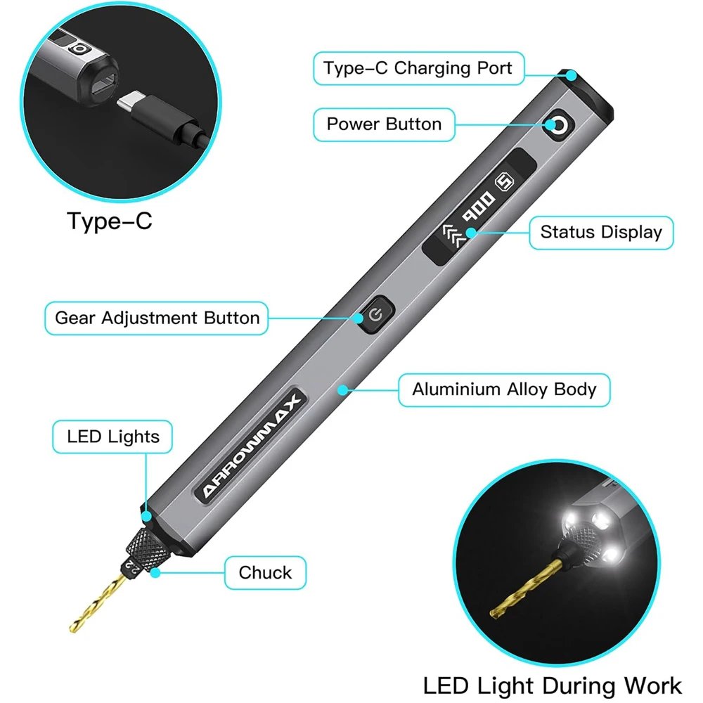 ARROWMAX Mini Electric Drill Rotary Tool Rechargeable Cordless Drill for Crafts Wood Plastic Aluminium Coin Home DIY SDS Ultra