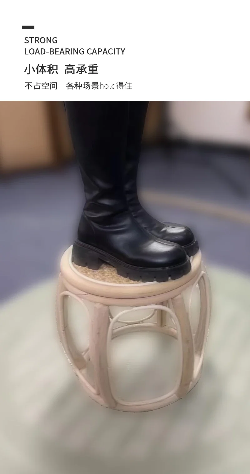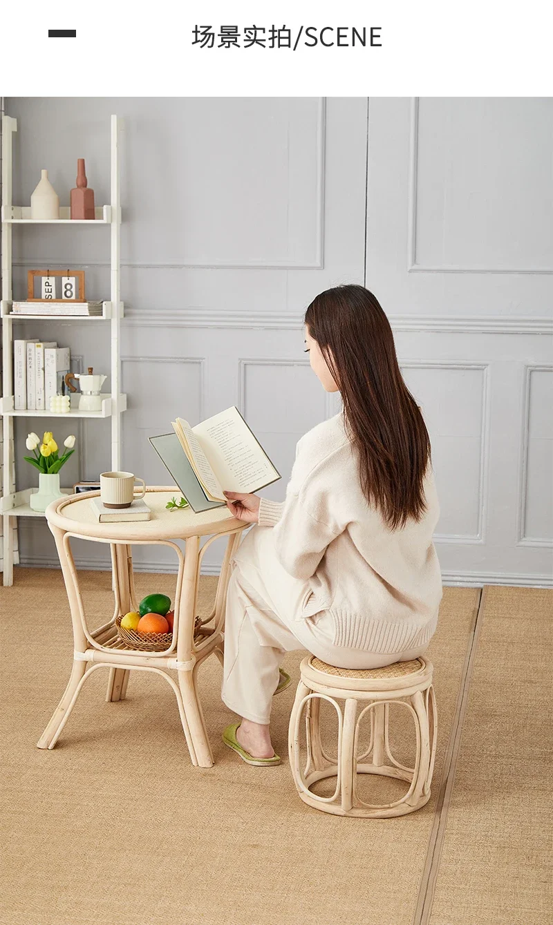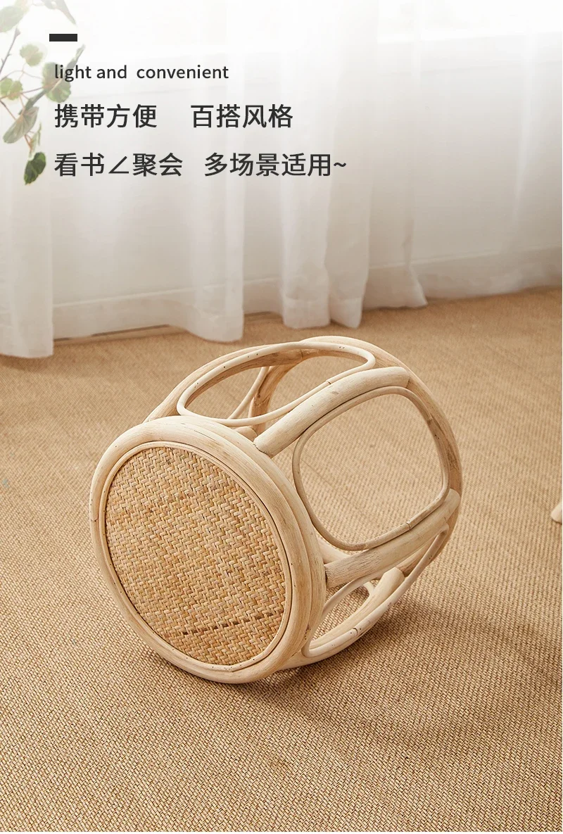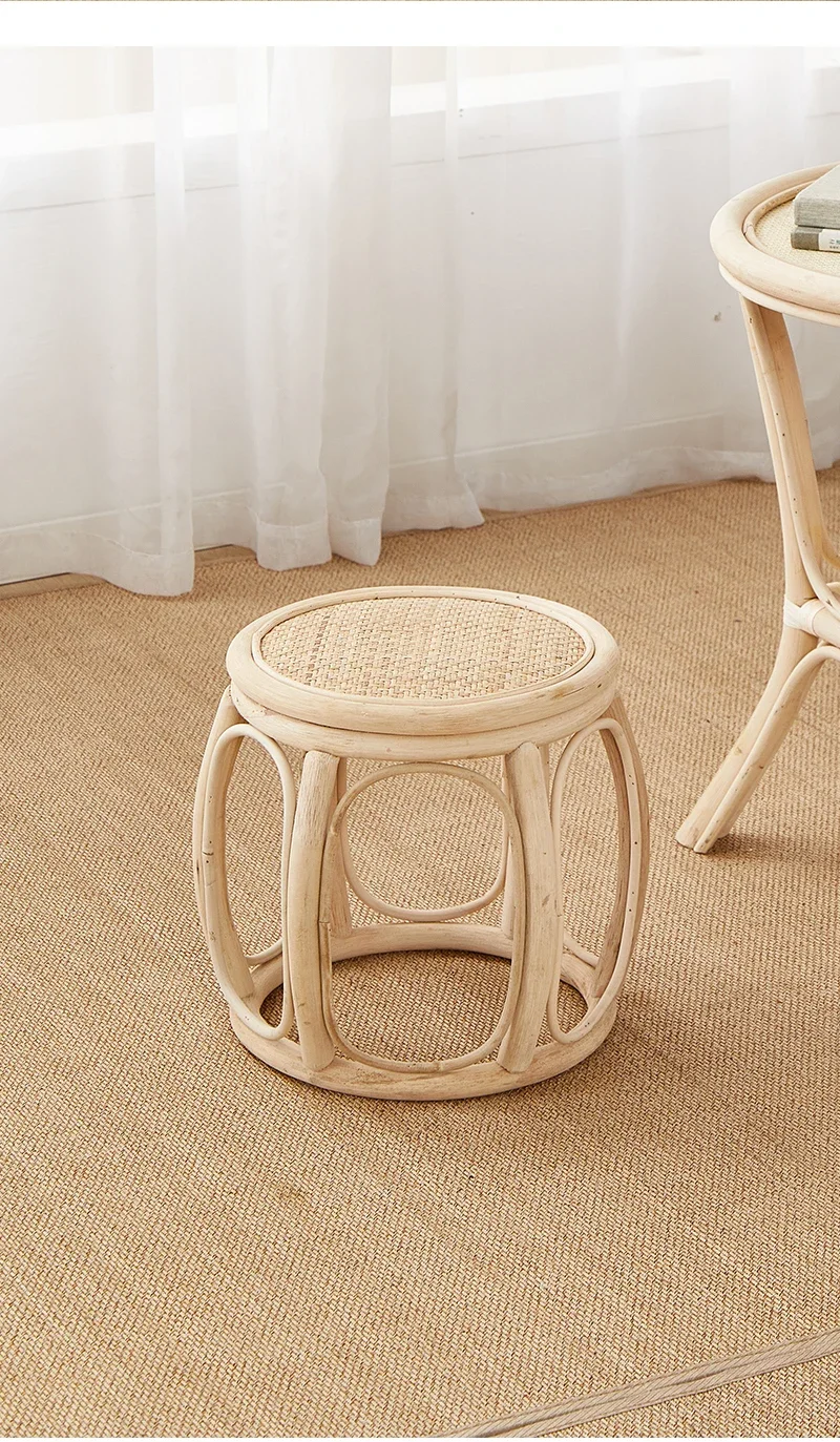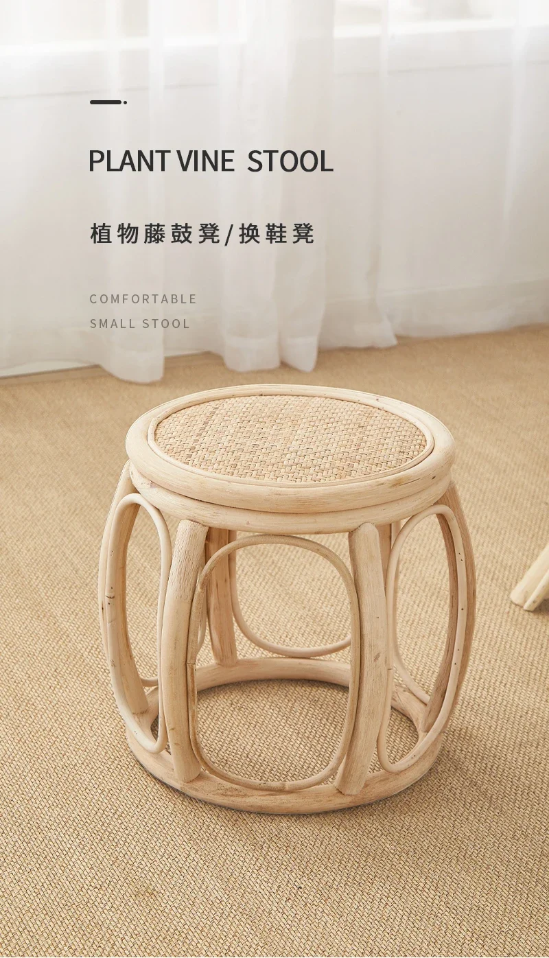 Furniture Rattan Woven Circular Stool Mobile Living Room Hallway Entrance Changing Shoes Bench Creative Plant Vine Drum chairs