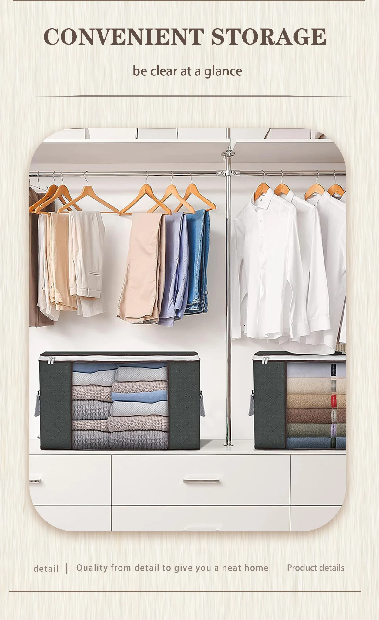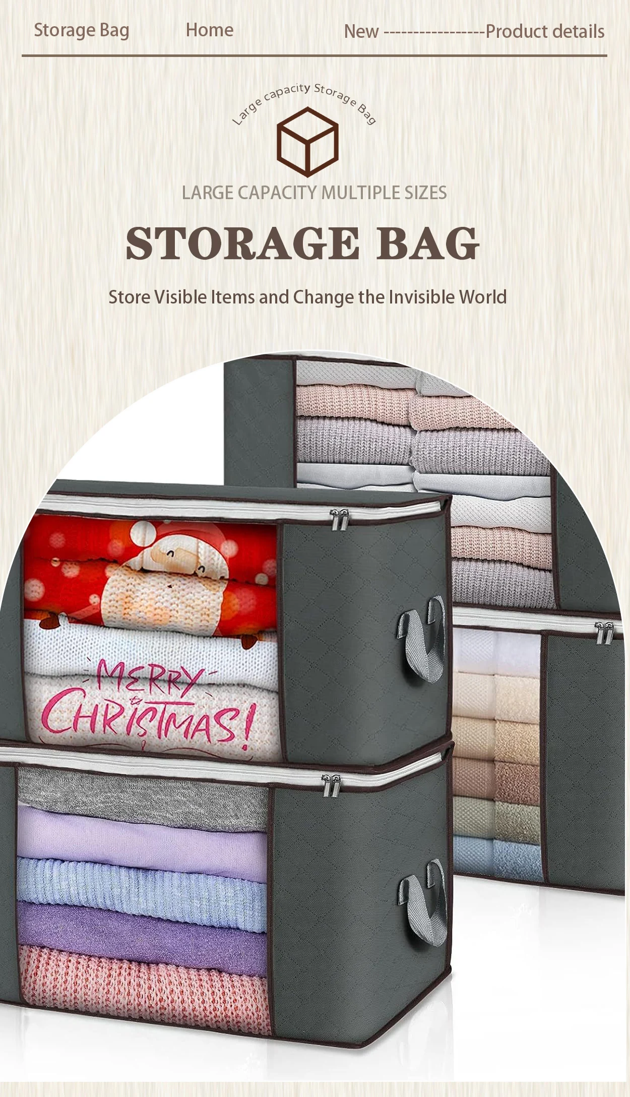 Home Foldable Non-Woven Storage Bags with Clear Window Closet Clothes Organizer Bag