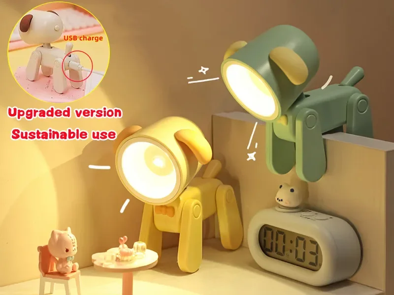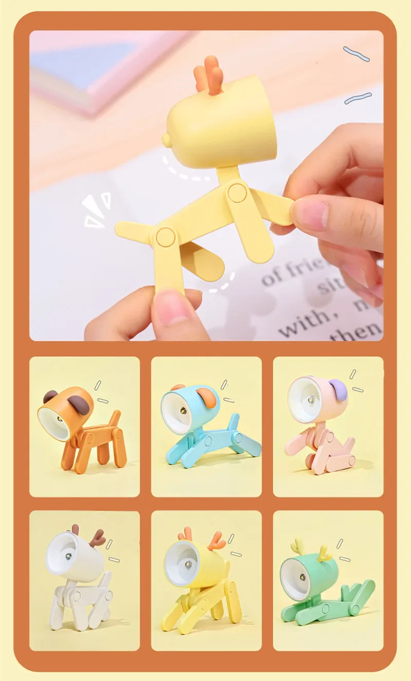 LED Night Light Mini Folding Desk Lamp Cute Pet Lights Dog Puppy Portable Night Light Student Living Room Decor Gift