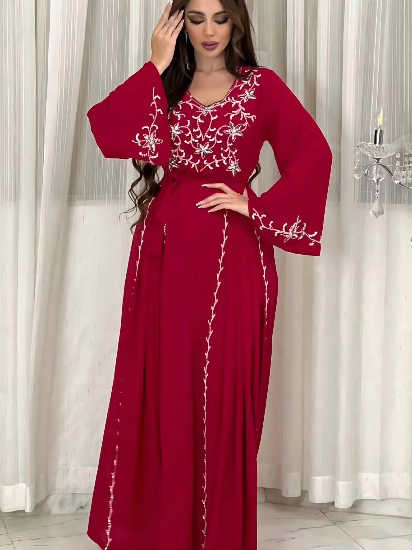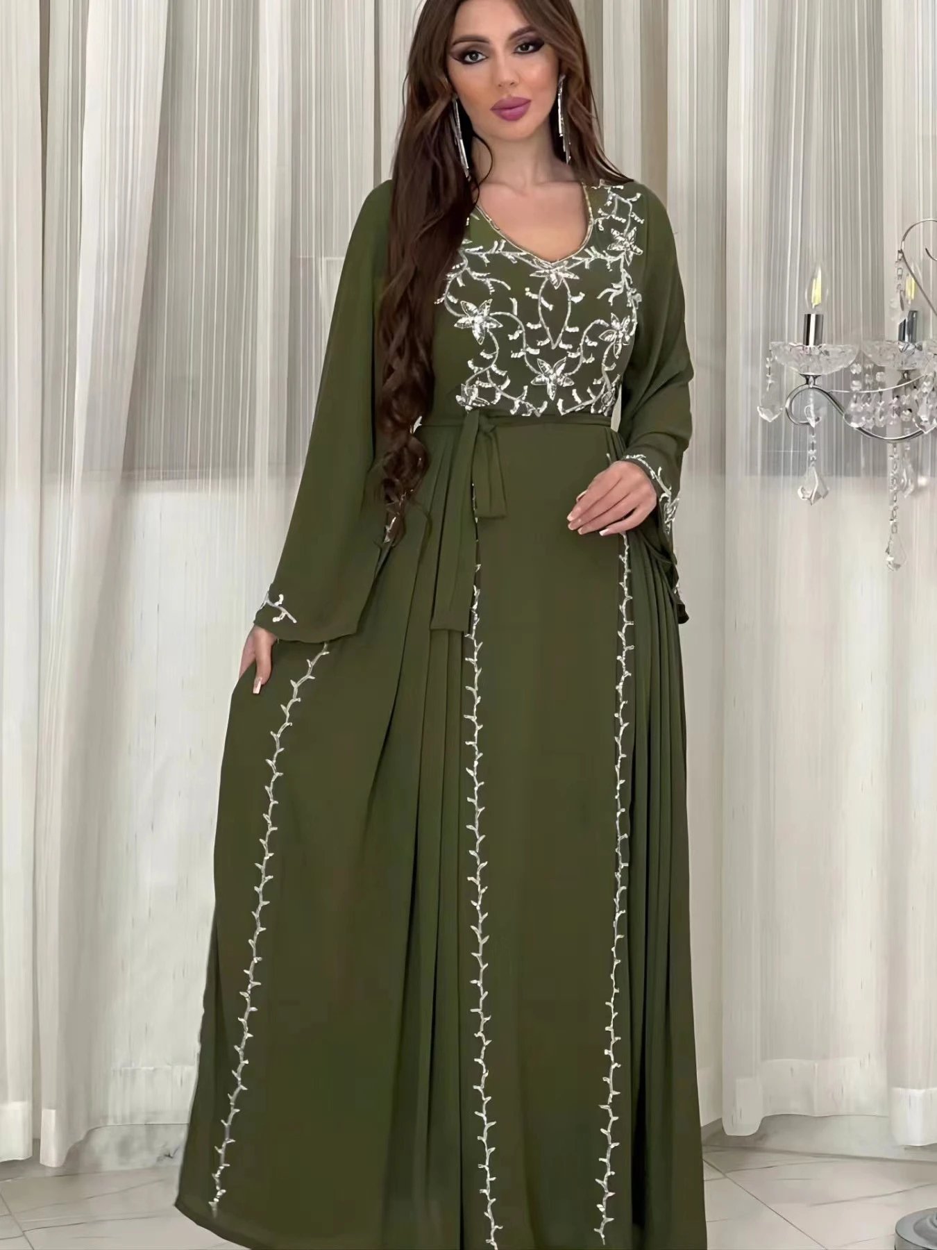 Luxury Muslim Women Long Sleeve Abaya Dress Eid Arabic Female Dubai Evening Party Jalabiya Moroccan Kaftan Islamic Turkey Dress