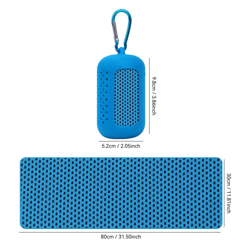 New cold-feeling fabric: The cold-feeling sports towel absorbs heat and adjusts the temperature through the particularity of the fabric structure, giving people a cool and comfortable feeling. The fabric does not contain additives, polymer materials, crystal glue, phase change materials, and is safe and healthy to use.