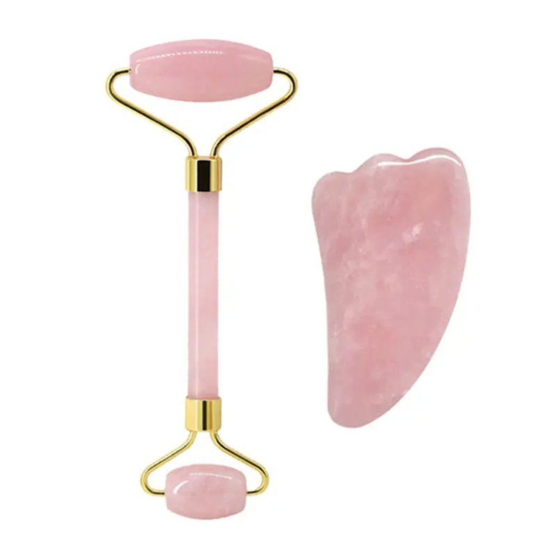 Rose Quartz Face Jade Roller Massagers Guasha Set Gua Sha Tools Natural Stone Gouache Scraper For Facial Massage Beauty Tool