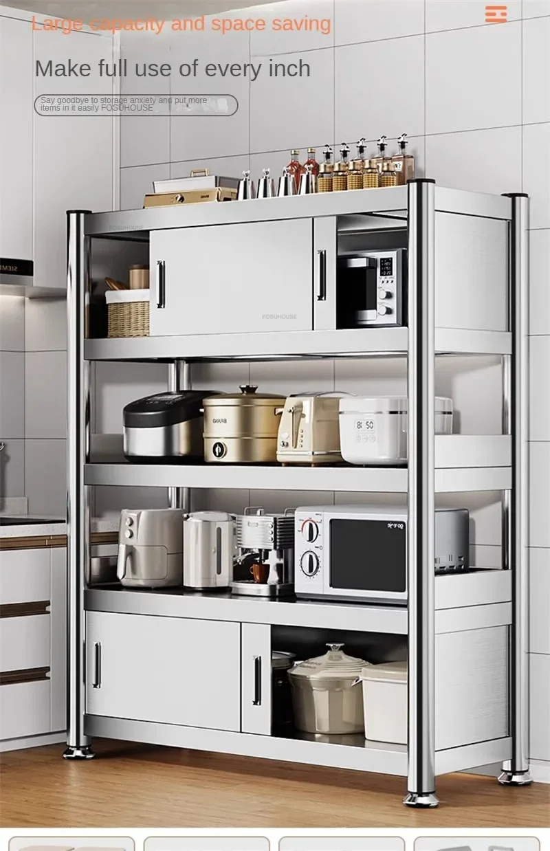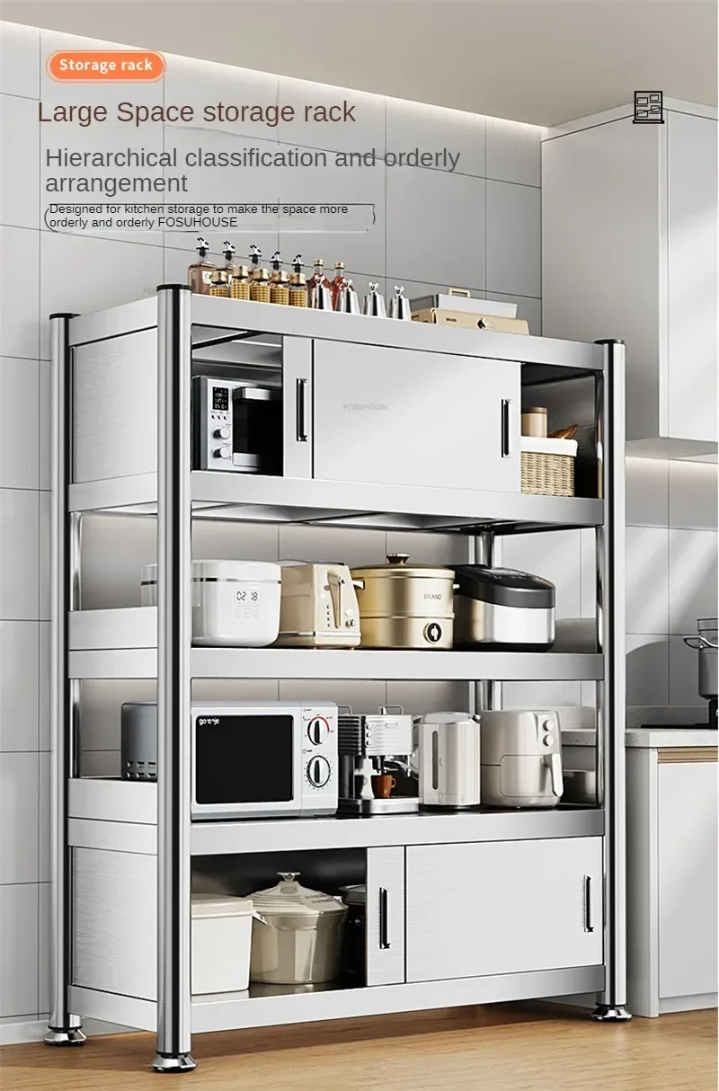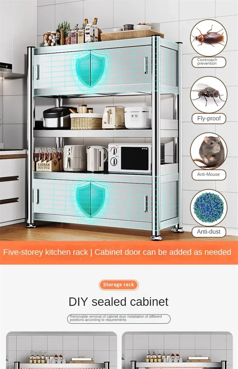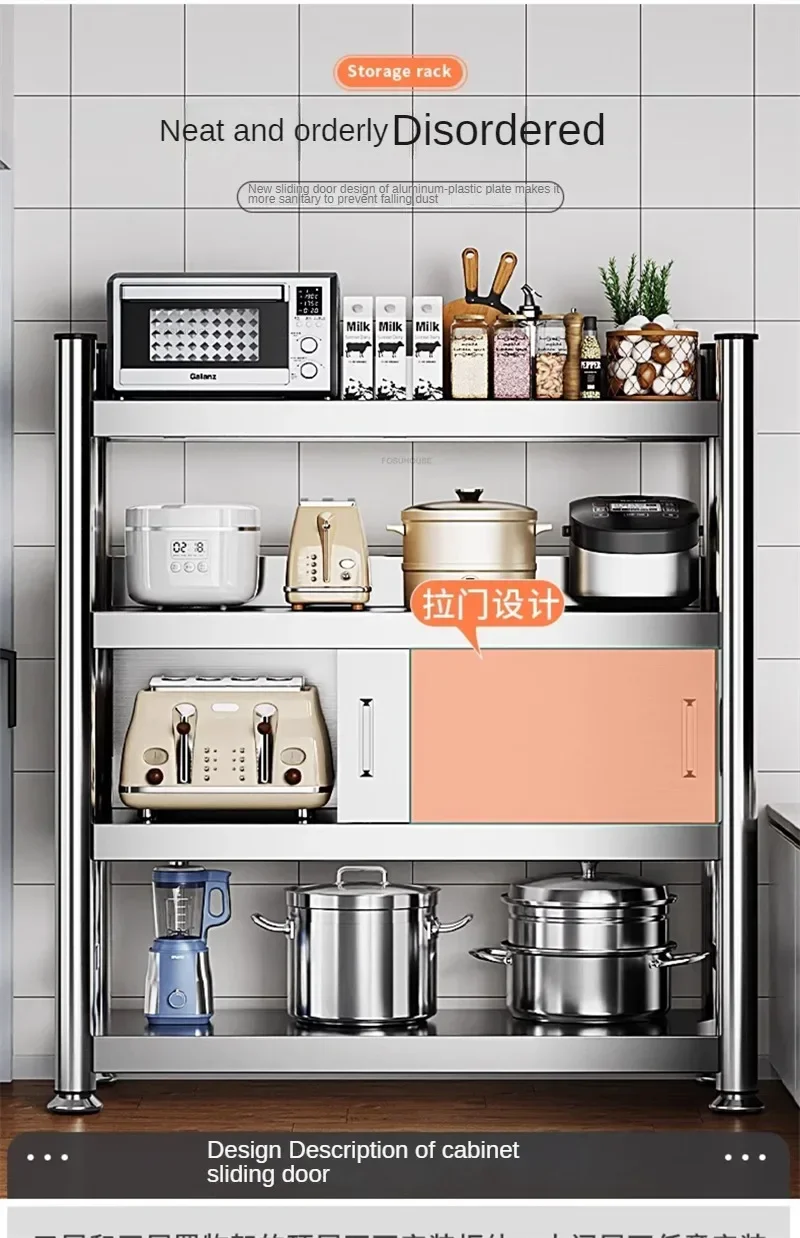 Stainless Steel Kitchen Cabinets with Door Floor Multi-layer Sliding Door Cabinet Storage Racks Multi-functional Home Furniture