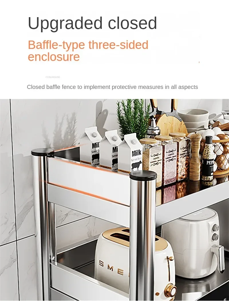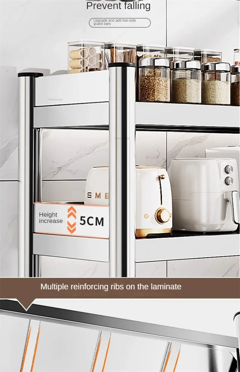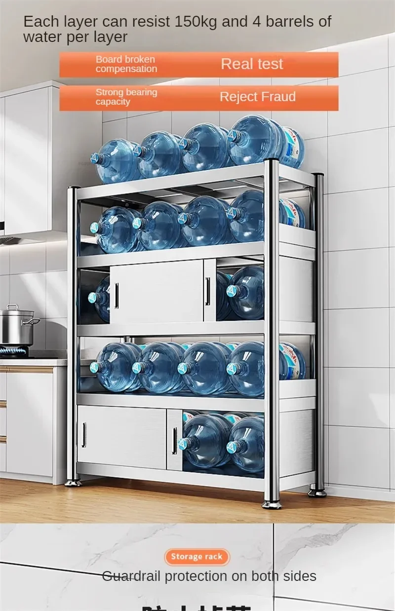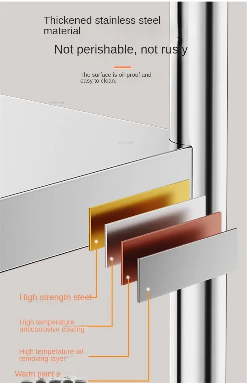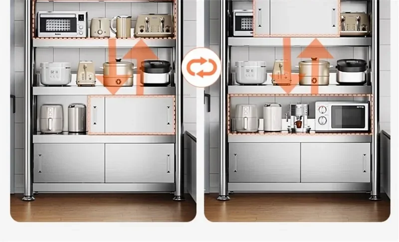 Stainless Steel Kitchen Cabinets with Door Floor Multi-layer Sliding Door Cabinet Storage Racks Multi-functional Home Furniture
