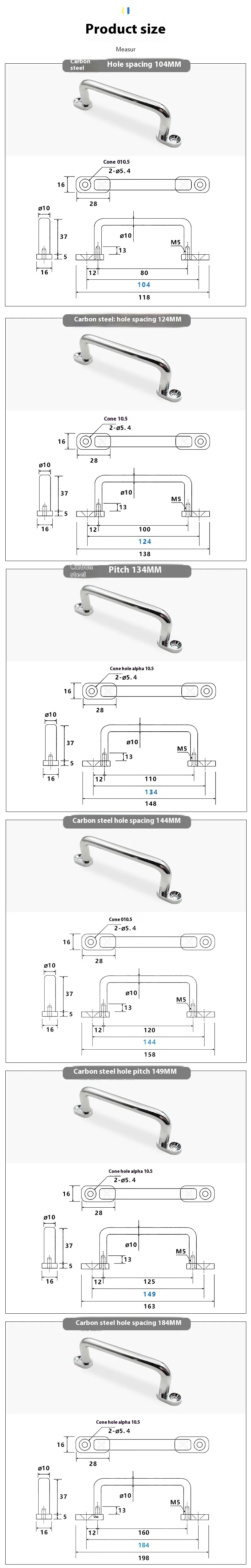 | color | Carbon steel hole spacing 104mm, Carbon steel hole spacing 124mm, Carbon steel hole pitch 134mm, Carbon steel hole pitch 144mm, Carbon steel hole pitch 149mm, Carbon steel hole spacing 184mm, Stainless steel hole pitch 104mm, Stainless steel hole pitch 124mm, Stainless steel hole pitch 134mm, Stainless steel hole pitch 144mm, Stainless steel hole pitch 149mm, Stainless steel hole spacing 184mm |